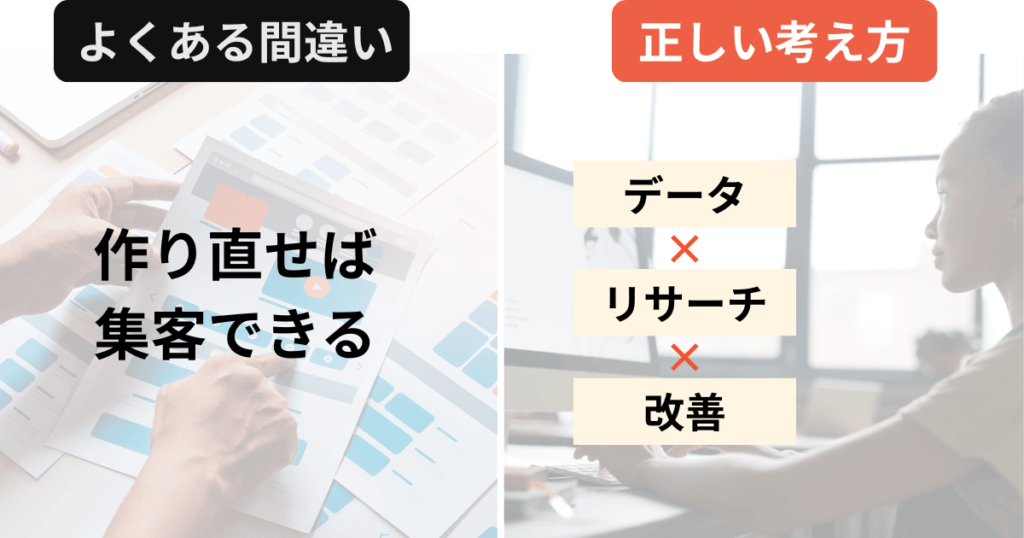 ホームページやECサイトが成果を出せない理由の多くは、データ分析と顧客リサーチ不足 にあります。